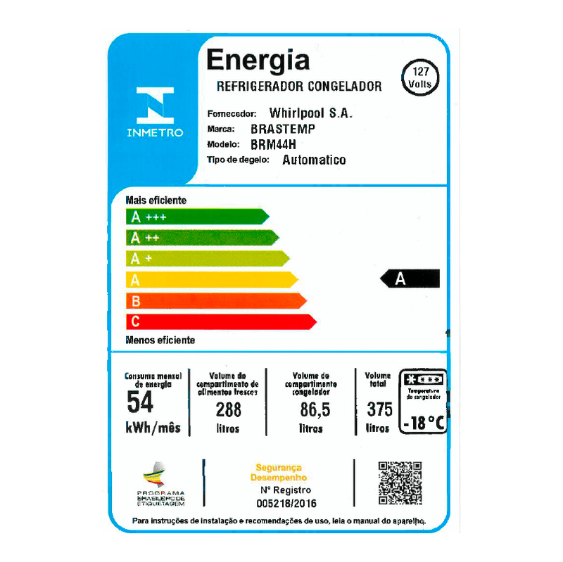 A Geladeira BRM44HB oferece 375 litros de capacidade com muita funcionalidade e eficiência para o se...