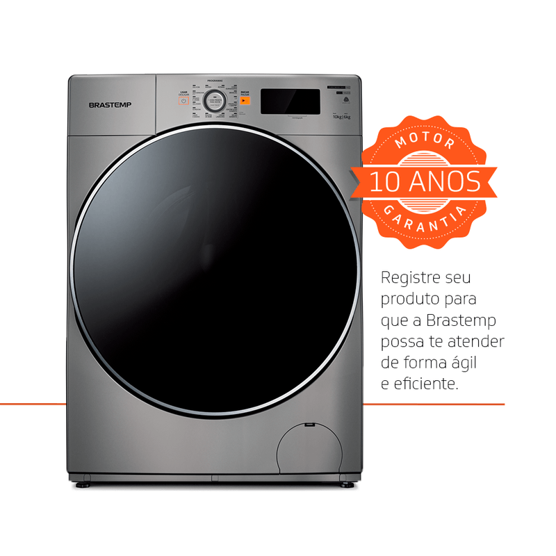 Lava e Seca Brastemp 10,1Kg/6Kg Prata Água Quente com Ciclo Tira Manchas Pro e Ciclo 1h Pronto para Vestir - BNQ10AS • 110V