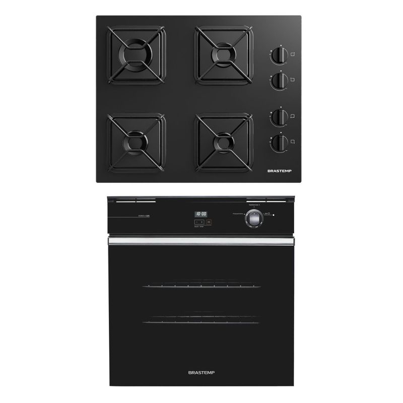 Combo Cooktop 4 Bocas a Gás Cor Preto + Forno de Embutir a Gás 78 Litros Cor Preto Brastemp (BDD61BE + BOA84AE) - BD61_BO8A_CJ