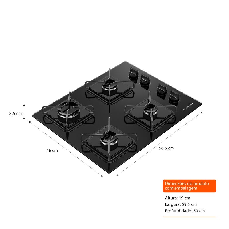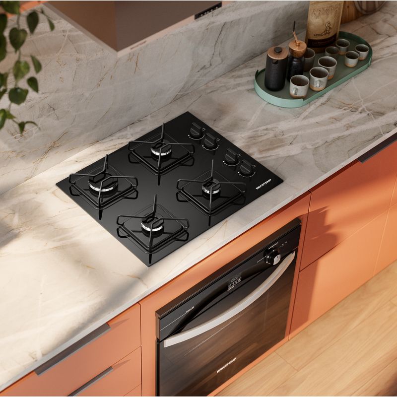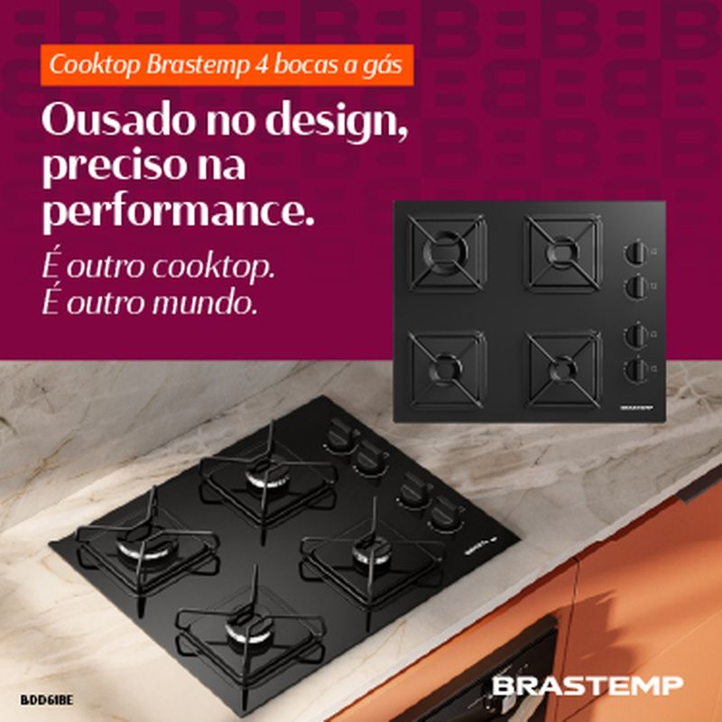 Cooktop Brastemp 4 bocas a gás com grades de ferro fundido e chamas especiais que garantem potência,...