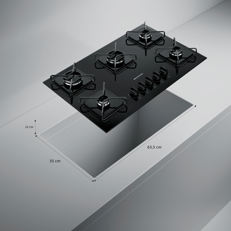 Cooktop 5 Bocas a Gás Brastemp com Grades de ferro Aramado e Chama Simmer - BDD75BE