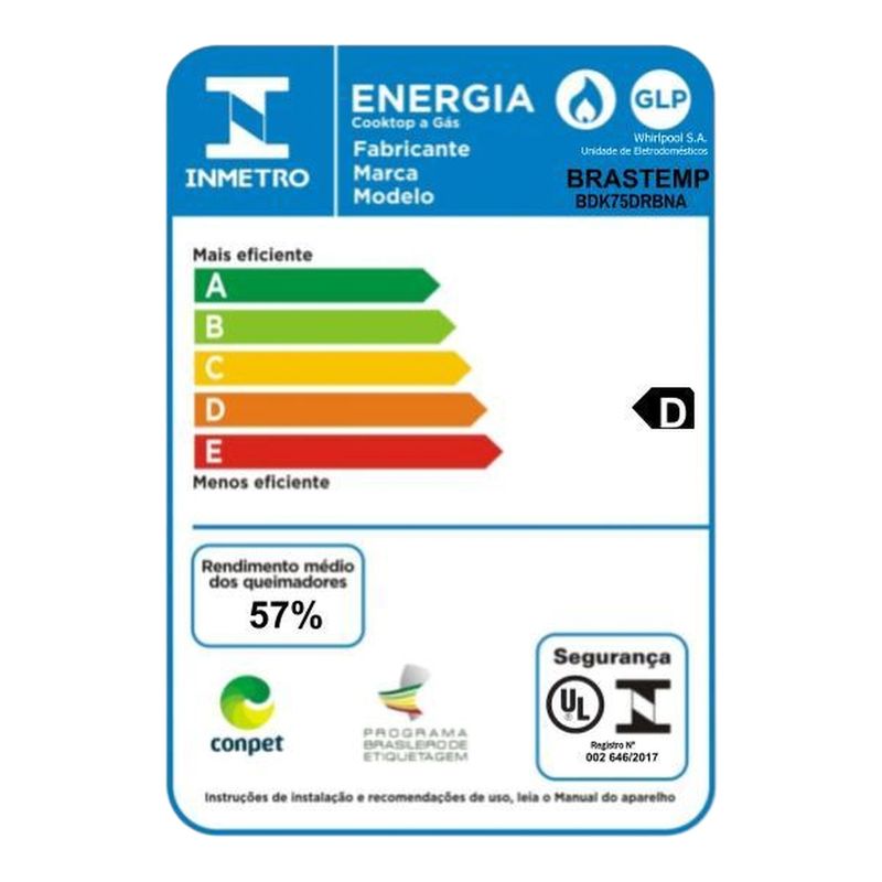 Cooktop 5 Bocas Brastemp Gourmand Inox com Duplachama e Trempe com Ferro Fundido - BDK75DR