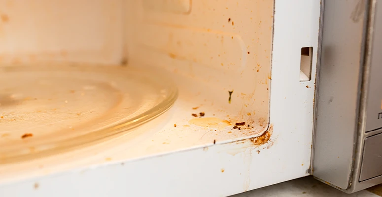 Após isso, utilize uma esponja macia para limpar o interior do micro-ondas, removendo manchas e qualquer resíduo de gordura.