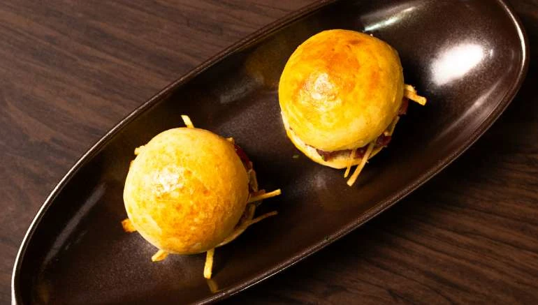Feche com a tampinha do pão e sirva.