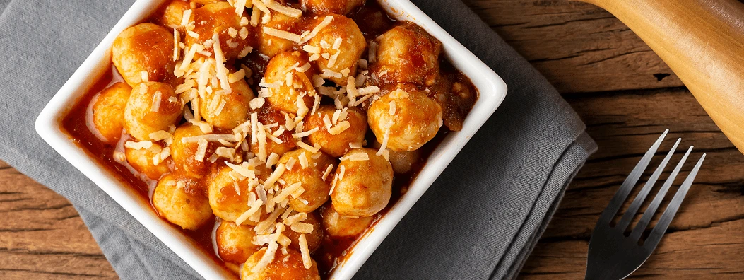 O prato chegou ao Brasil junto com os primeiros imigrantes italianos e se tornou clássico por aqui: almoço de domingo em família, reunião de amigos ou mesmo jantar a dois, com um bom vinho. Nhoque é sempre uma boa pedida, ainda mais quando acompanhado do clássico molho bolonhesa!