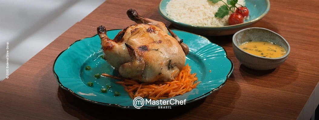 Segredos do recheio perfeito: no caso da ave recheada, o recheio faz toda a diferença – o recheio deve ter a consistência de uma farofa bem úmida. A base é a farinha de sua preferência – de milho, mandioca ou rosca – com manteiga, e você pode condimentá-la da maneira que preferir. Uma dica é usar calabresa, bacon ou, assim como o Luiz, que venceu a prova do Masterchef Brasil, os próprios miúdos do frango.