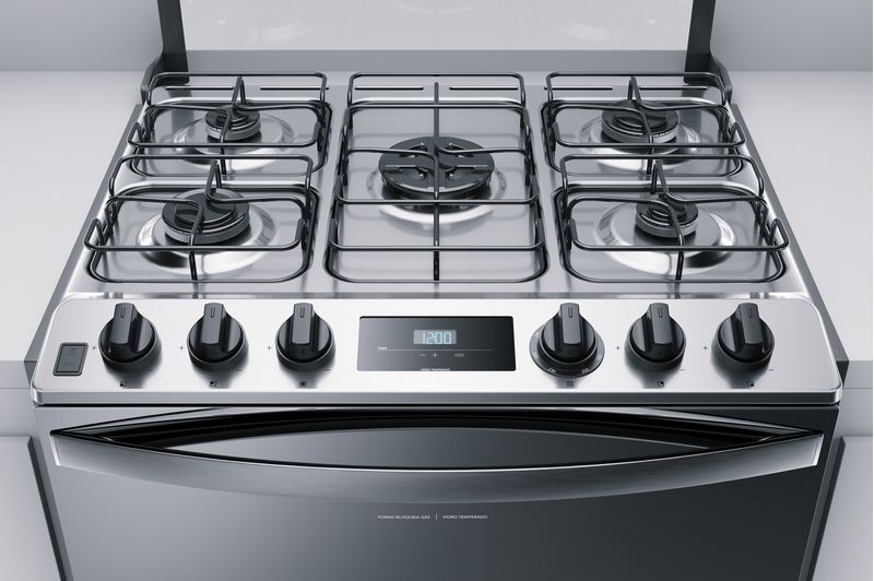 O puxador em alumínio escovado tem formato confortável para facilitar abrir a porta do forno no dia a dia. Ele ainda é resistente às altas temperaturas.