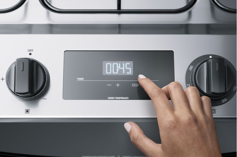Controle com precisão o tempo de preparo das suas receitas. O timer emite um aviso sonoro ao final do tempo programado no painel digital para lembrar de conferir o andamento do prato.