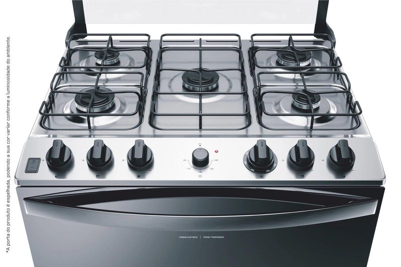 O Fogão Brastemp 5 Bocas Duplo Forno Inox combina a potência de um forno a gás com a precisão de um ...