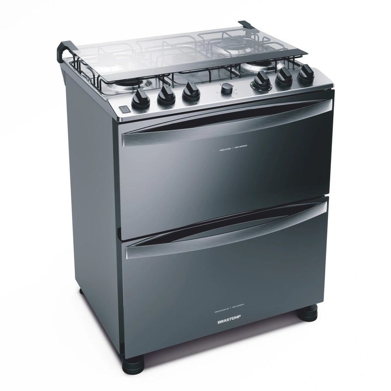 O Fogão Brastemp 5 Bocas Duplo Forno Inox combina a potência de um forno a gás com a precisão de um ...