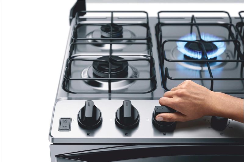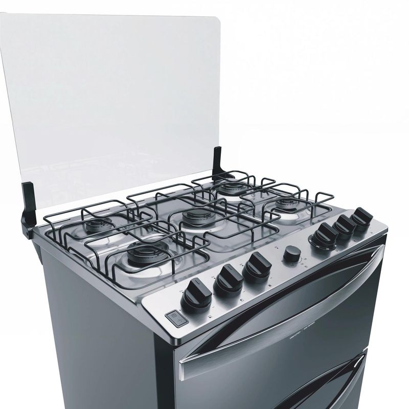 Fogão Brastemp 5 Bocas Duplo Forno Cor Inox Com Botões Removíveis e Exclusivo Aro Protetor - BFD5NCR