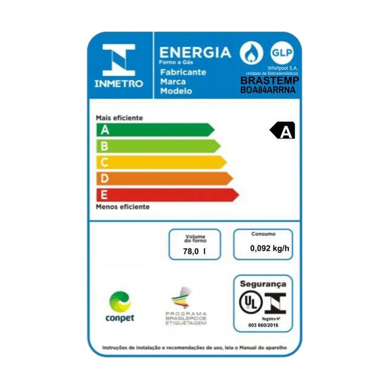Forno de Embutir a Gás Brastemp 78 Litros Cor Inox Espelhado com Grill e Timer Touch - BOA84AR