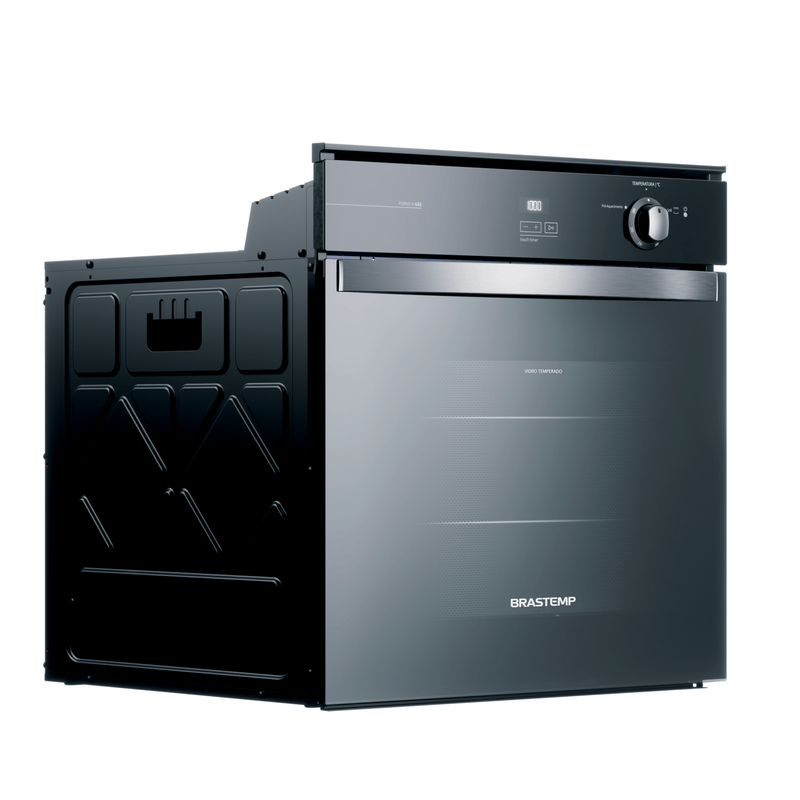 O Forno de Embutir a Gás Brastemp 78 Litros Inox Espelhado com Grill e Timer Touch combina eficiênci...