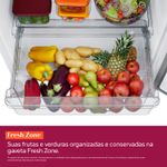 [3] A gaveta de legumes mantém a temperatura e a umidade mais adequadas para o armazenamento de frutas e hortaliças, preservando suas características naturais por mais tempo.