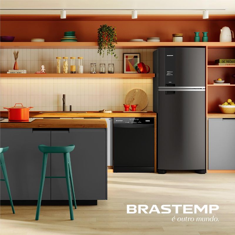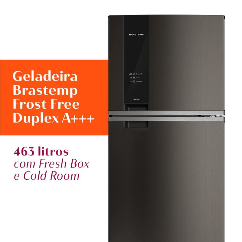 A Geladeira Brastemp Frost Free Duplex A+++ 463 litros conta com a gaveta Fresh Box, que preserva fr...