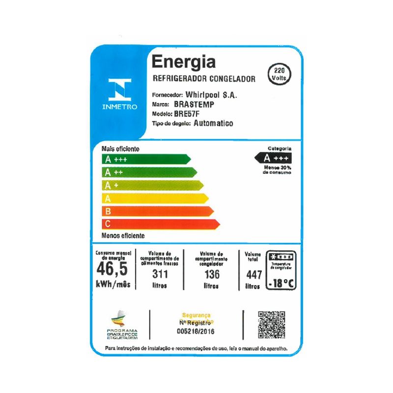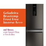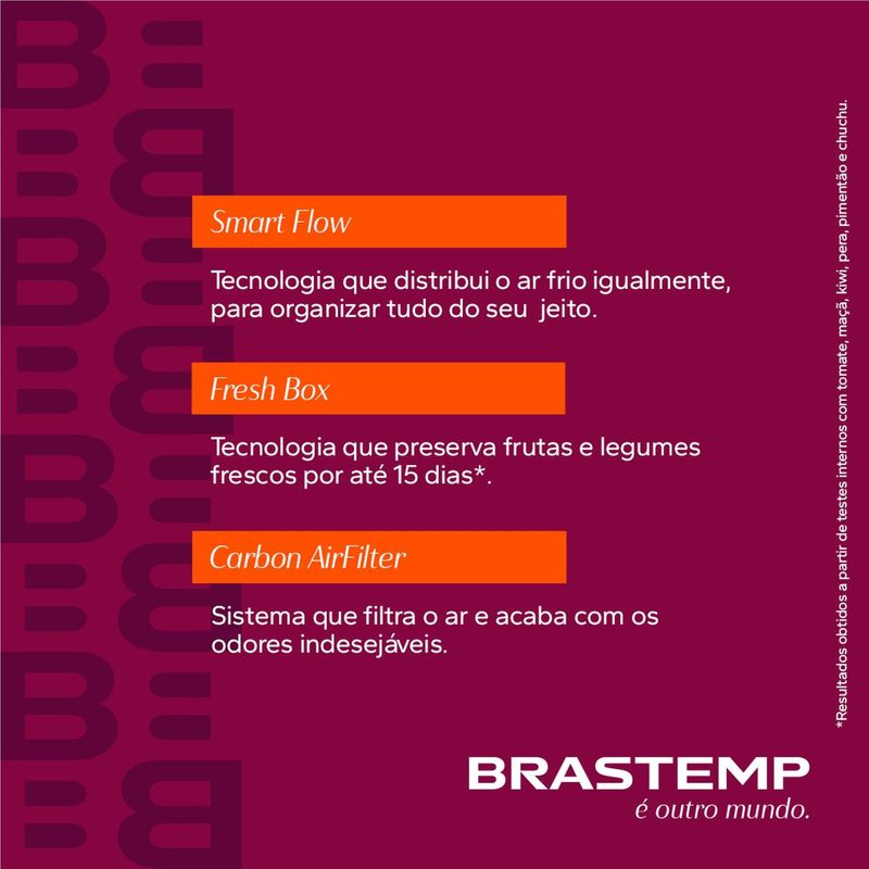 A Geladeira Brastemp Frost Free Inverse A+++ 447 litros conta com a tecnologia Smart Flow, que distr...