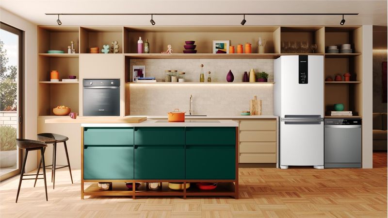 Lugar de alimento é na prateleira que você quiser! Tecnologia que distribui o ar frio igualmente na geladeira, dá para organizar tudo do seu próprio jeito.