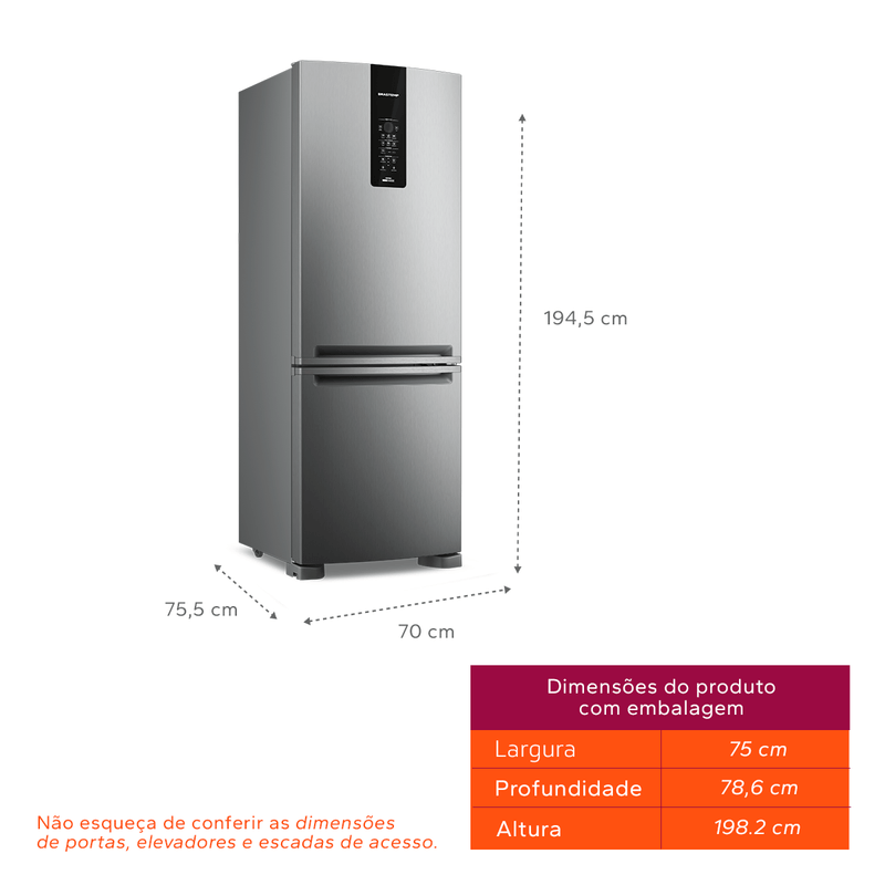 Geladeira Brastemp Frost Free Inverse A+++ 461 Litros Cor Inox com Tecnologia Inverter e Freeze Control Advanced - BRE59FK
