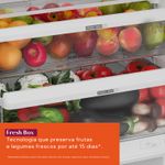 | Acabamento interno | PRATELEIRAS, CESTOS E GAVETAS REFRIGERADOR: Prateleiras do refrigerador em vidro com perfis traseiros e frontais em plástico extrudado na cor branca; Prateleiras de porta e compartimento cold room injetados em plástico transparente; Gavetas de legumes injetado em plástico transparente com acabamento branco e serigrafado.