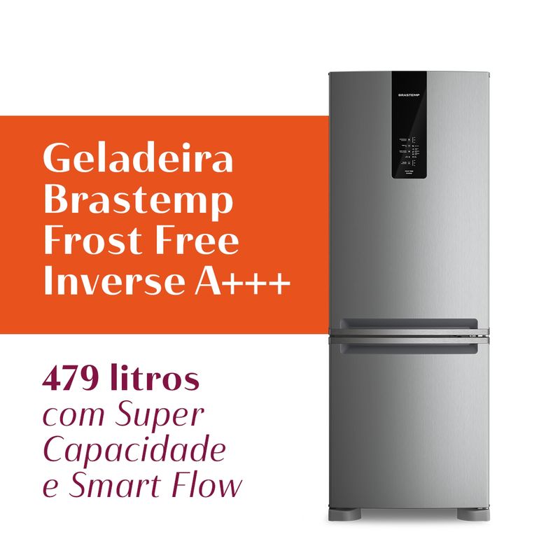Geladeira Brastemp Frost Free Inverse A+++ 479 Litros Cor Inox com Super Capacidade e Smart Flow - BRE58FK