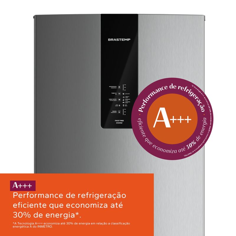 Performance de refrigeração eficiente que economiza até 30% de energia. A Tecnologia A+++ economiza até 30% de energia em relação a classificação energética A do INMETRO.