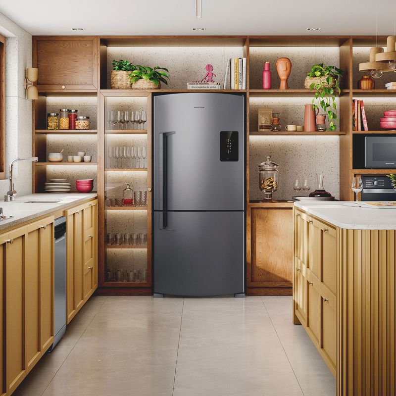 A Geladeira Brastemp Frost Free Inverse BRE85MK é elegante por fora e gigante por dentro! Possui a T...