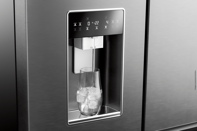 Fabricação de gelo integrada à porta, o que dá mais espaço interno para a sua geladeira.