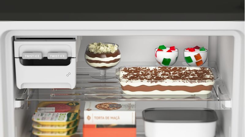 Revestimento especial da Brastemp com película impermeabilizante e materiais de alta qualidade que protege a sua geladeira contra ferrugens e corrosões. São 3 anos de garantia no material da porta da sua geladeira.
