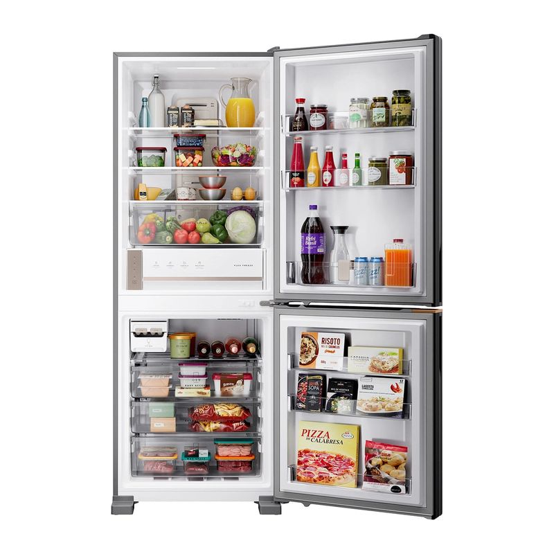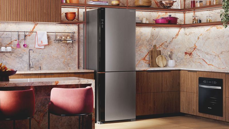 [5] Maior capacidade líquida do compartimento freezer, considerando geladeiras 2 portas (com freezer embaixo), plataforma 70cm do mercado, segundo a GFK FY'2024.