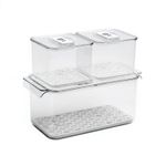 Conjunto de 3 containers para geladeira, com marcador de data, respirador, e fundo especialmente ond...