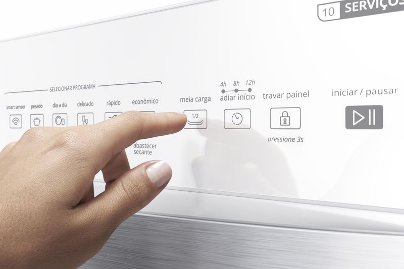 A lava-louças Brastemp 10 serviços branca com ciclo pesado combina eficiência, tecnologia e praticid...