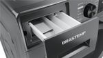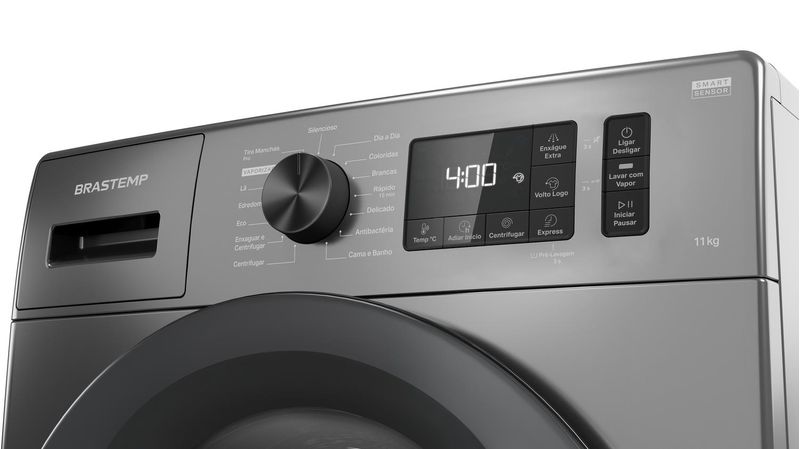 [4] Testes internos: redução de até 40% de vincos em algodão, alta remoção de odores, manchas difíceis (sangue, chocolate, gordura, carvão, vinho) em água fria, elimina germes com vapor, previne amassados em jeans (ciclo 2h). Detalhes no manual.