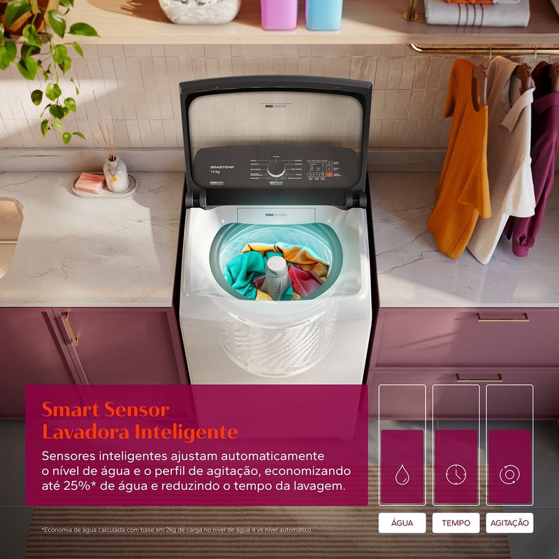 ¹Economia de água calculada com base em 2kg de carga no nível de água 4 vs. nível automático.