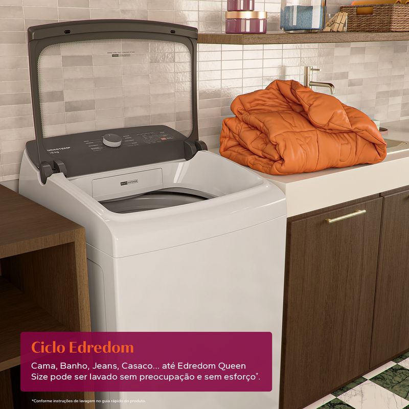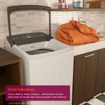 [2] Valores de redução são diferentes de acordo com o ciclo e etapa selecionada. Sem redução nas fases de enxágue e centrifugação. A redução de até 45 minutos é considerando apenas o ciclo Panos de limpeza + Nível de água 4 + Molho Extra + Agitação Turbo.