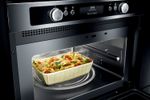 Utilizando os acessórios especiais que acompanham o micro-ondas, usufrua da função Crisp, que deixa os alimentos crocantes mantendo a suculência, e da função Vapor, que potencializa a retenção dos nutrientes dos alimentos, entregando receitas saudáveis e com sabor.